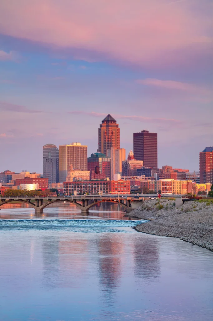 Des Moines – Iowa’s capital and largest city attracts Californians with median home prices around $190,000 versus $750,000 in CA, plus thriving insurance and financial sectors anchored by Principal Financial Group and Wells Fargo operations.